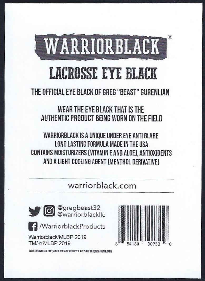 WarriorBlack issued a single Greg “Beast” Gurenlian trading card in blister packs of their eye black in 2019.